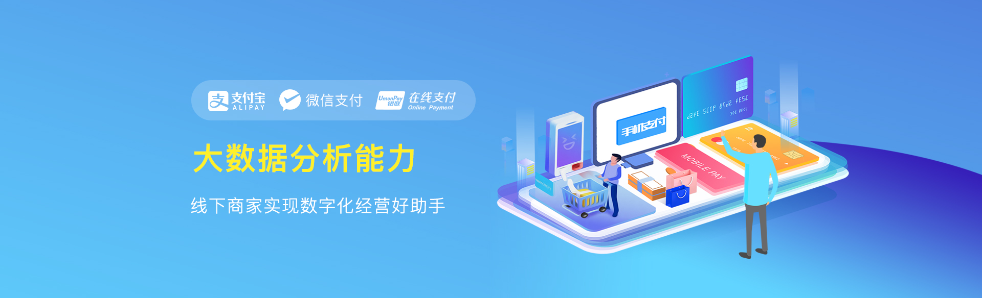 完善的支付行业解决方案,可根据不同行业,不同场景,不同需求做个性化 定制,不仅仅是收银,还可以帮助商户实现线上营销,从拓客到客户维系等 一站式解决方案。